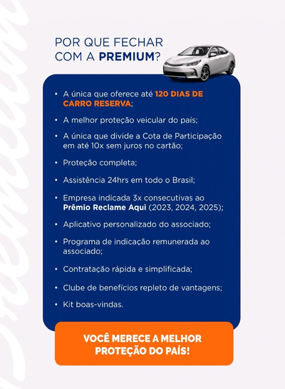 Proteja seu carro, moto ou caminhão com a confiança do Premium Clube de Benefícios. Segurança na estrada!