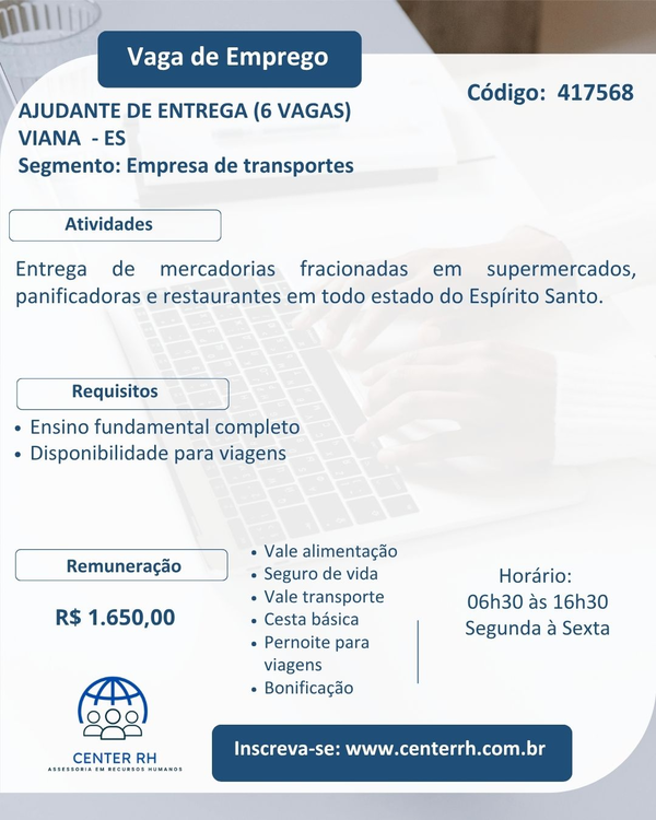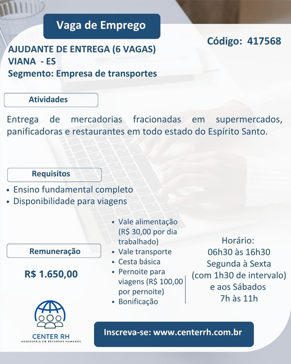 Exibir dicasCuidado com ofertas de emprego que solicitam o pagamento de taxa, exame admissional ou compra de certificados de cursos.
