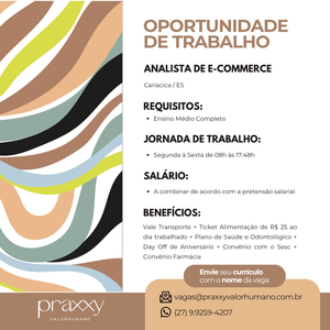 Vale Transporte + Ticket Alimentação de R$ 25 ao dia trabalhado + Plano de Saúde e Odontológico + Day Off de Aniversário + Convênio com o Sesc + Convênio Farmácia