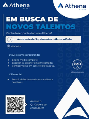 Estamos com oportunidade aberta para Assistente de Suprimentos - Almoxarifado no novo Hospital que será inaugurado em Vila Velha! 🩵