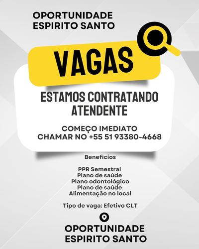 Exibir dicasCuidado com ofertas de emprego que solicitam o pagamento de taxa, exame admissional ou compra de certificados de cursos.