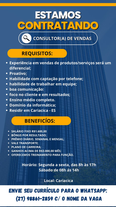 Encontrou algum problema? Denuncie esta vaga e nos ajude a manter a qualidade do portal