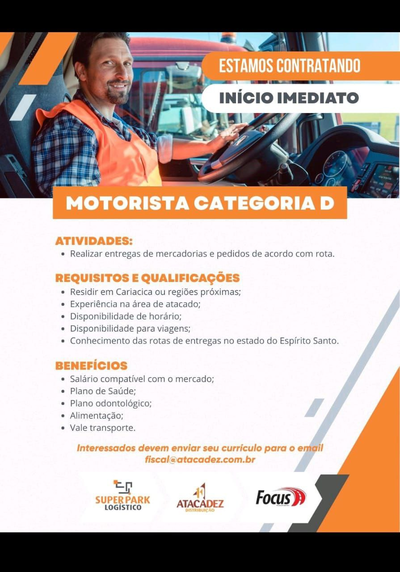 ESTAMOS CONTRATANDO INÍCIO IMEDIATO
