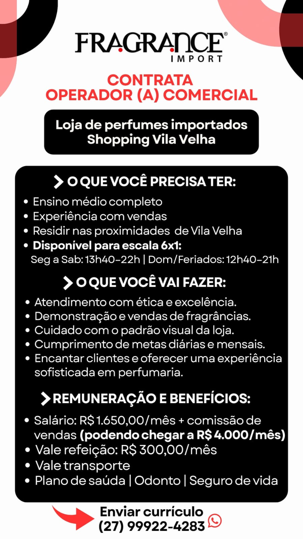 ⚠️ Atenção: esta publicação é apenas para divulgação da vaga. Para mais informações, utilize somente o contato informado acima
