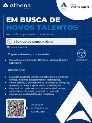 Estamos com uma nova oportunidade para Técnico de Laboratório no Hospital Vitória Apart de Vila Velha! ✨